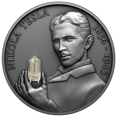 Tesla was a visionary who profoundly transformed our understanding of electricity and energy. Commemorating his 80th anniversary of the death Art Mint has chosen to pay tribute to one of the most brilliant figures of the last century with a stunning and innovative coin.