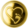 The reverse of the coin features the imprint of a baby’s tiny feet. Along the edge,