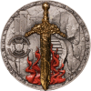 The Archangel Uriel: The Light of God coin invites collectors into the divine presence of Uriel, a symbol of wisdom, illumination, and spiritual protection. Struck in 2 oz of pure silver with handmade gold foil accents, this limited-edition piece—only 199 minted—captures Uriel in his serene yet powerful form. On the obverse, Uriel holds a gleaming sword, enhanced with glow-in-the-dark elements, while his wings spread majestically behind him, representing his celestial role. The reverse features the sword plunged into the earth, surrounded by flames, signifying Uriel’s purifying power and divine guidance. This 50 mm coin, issued by the République du Cameroun, is not just a tribute to Uriel’s role as the “Light of God” but also a talisman of spiritual wisdom and strength. With Uriel’s fiery sword cutting through darkness, the coin embodies Uriel’s mission to bring clarity, truth, and protection to those who seek his guidance.