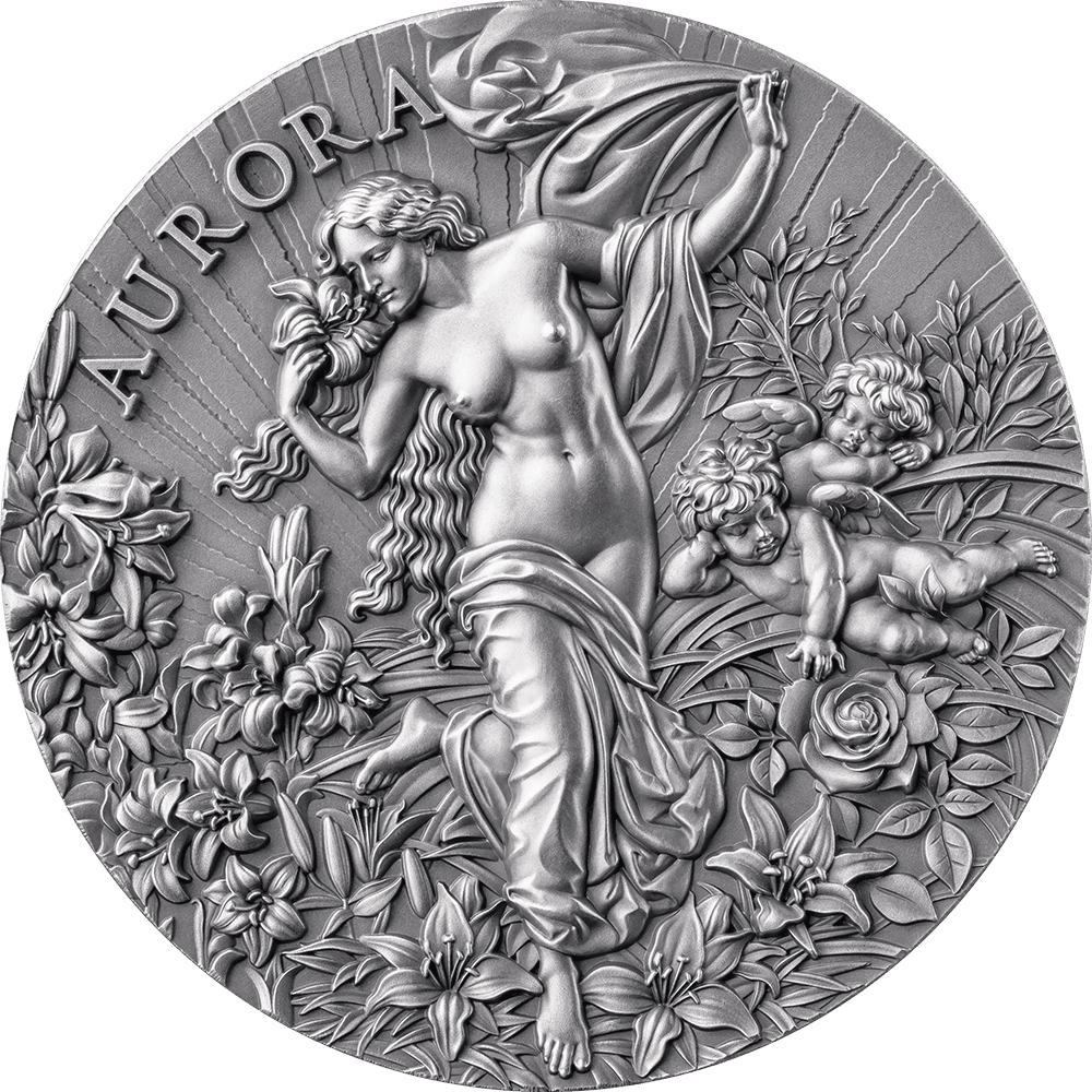 Inspired by William-Adolphe Bouguereau’s painting Dawn, this exquisite 2-ounce silver coin