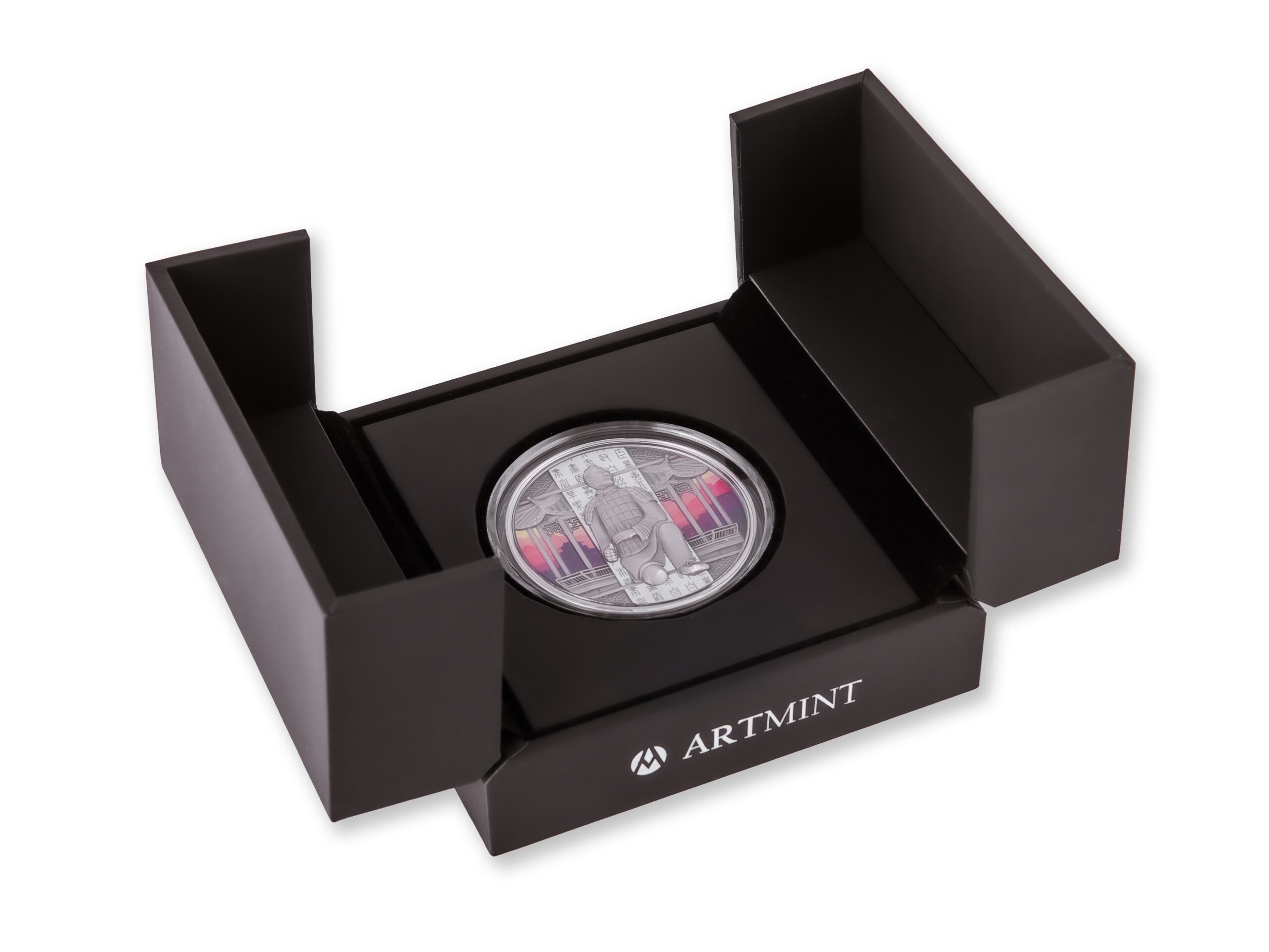 The fourth release in the 7 Groundbreaking Ancient Civilizations series, this remarkable 2 oz silver coin pays tribute to the awe-inspiring Terracotta Army of China, one of the most significant archaeological finds in human history. Struck from .999 fine silver with an impressive 3D high relief, handmade antique finish, and intricate UV printing, the reverse showcases a life-sized clay warrior in full detail, representing the soldiers and officers who served under Qin Shi Huang, the first Emperor of China. Complementing the figure are architectural elements and inscriptions in small seal script, the archaic form of Chinese writing from the Qin dynasty. The obverse bears the Coat of Arms of Cameroon, the inscriptions “REPUBLIQUE DU CAMEROUN,” “2000 FRANCS CFA,” and “2025,” along with seven circular inscriptions—each featuring ancient writing or alphabets that represent one of the civilizations in this captivating series. Individually numbered for authenticity, this coin is presented in an elegant case with a Certificate of Authenticity. With a strictly limited mintage of just 300 pieces worldwide, it is a fitting tribute to the “Eighth Wonder of the World” and an essential addition for collectors of ancient history.