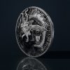 Introducing the Commander of the Atlantic coin, the inaugural release in the Myths and Masters of the Seven Seas series. Crafted from 2 oz of .999 fine silver and limited to only 199 pieces, this 50 mm masterpiece by the République du Cameroun celebrates the legendary Captain who navigates the powerful Atlantic Ocean. The obverse features a detailed portrait of the Captain with selective gold foil accents on his naval uniform, set against a majestic battleship slicing through stormy waves. On the reverse, witness the Captain’s ship braving towering waves under a sky illuminated by glow-in-the-dark constellations, symbolizing celestial guidance. Enhanced with heat-sensitive technology, the coin dynamically transitions from serene daylight to a dramatic storm, reflecting the Atlantic’s ever-changing moods. This coin embodies courage, leadership, and the awe-inspiring power of the seas, making it a rare and immersive collectible for maritime enthusiasts and discerning collectors alike. Secure your piece of this limited-edition masterpiece and embark on a timeless voyage through the Seven Seas.