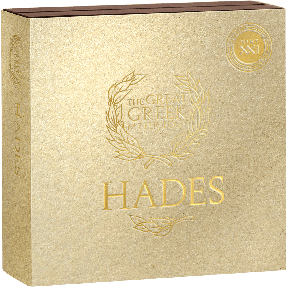 Hades, stern ruler of the underworld and guardian of the souls of the deceased, is depicted