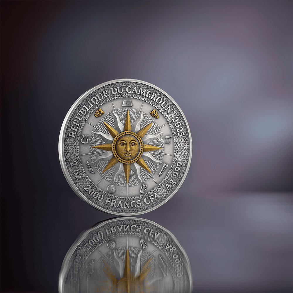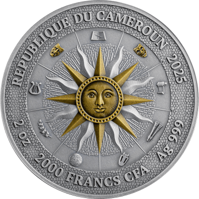 and comedy. This 2-ounce silver coin by Cameroon presents a striking contrast: sorrow in one