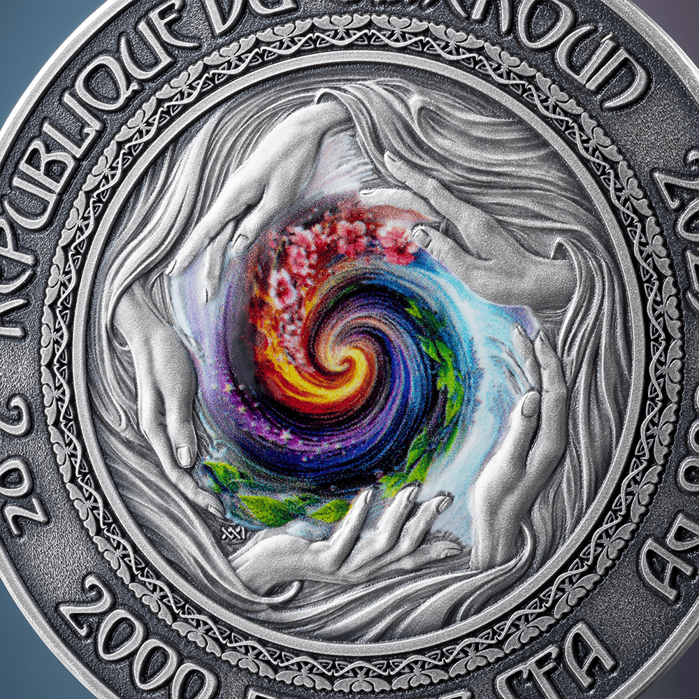 Struck in high relief, this limited-edition Cameroun coin preserves the magic of legend, where