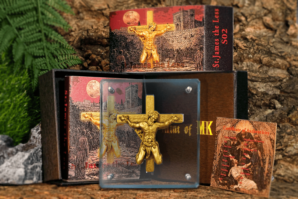 On the reverse, St. James the Less is portrayed at the moment of crucifixion, kneeling in serene surrender against the cross, his robes flowing and expression divine. The upper beam bears his name, and the choice of finishes—antique for dramatic shadows or gold-gilded for a martyr’s radiance—offers collectors two distinct emotional experiences. This coin honors a humble yet pivotal apostle whose leadership and unwavering devotion helped shape the early Church. With its unique iconography, dual artistic treatments, and exceptional craftsmanship, the St. James the Less Coin stands as both a rare numismatic treasure and a profound testament to faith carved in silence.