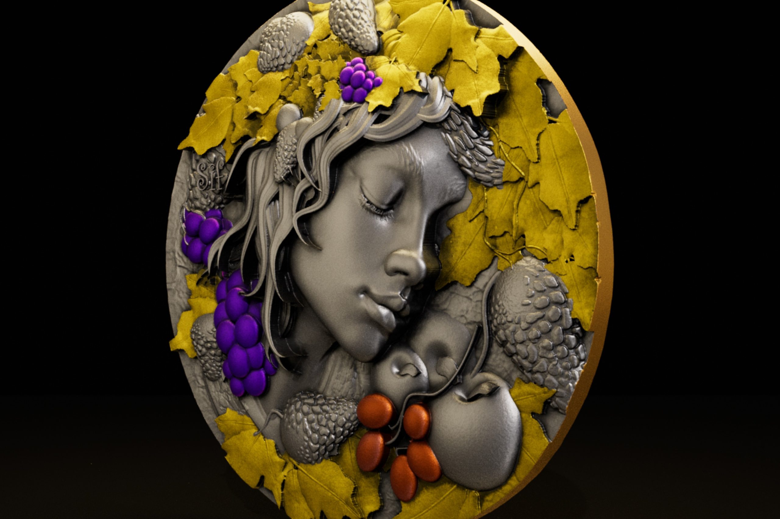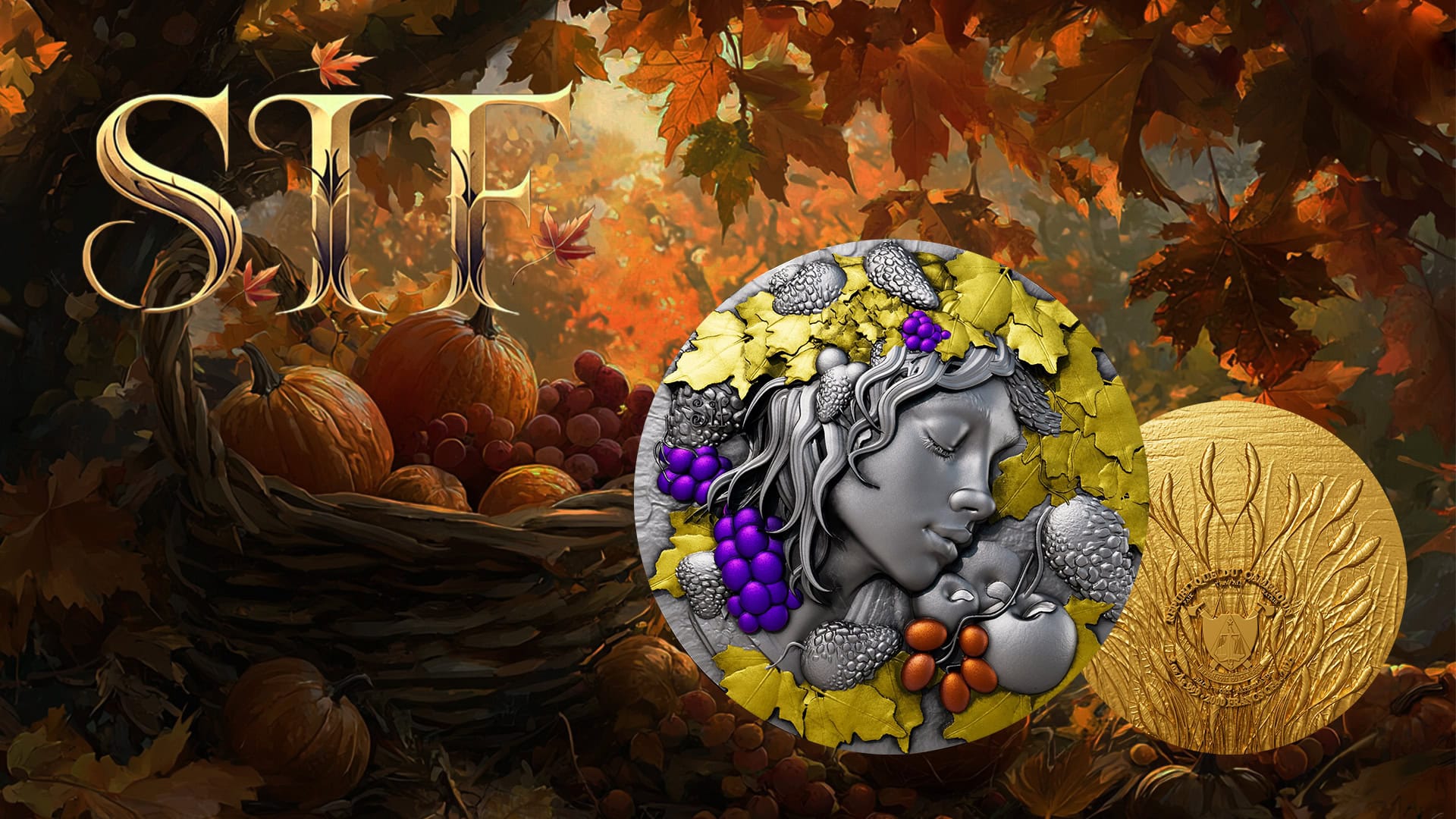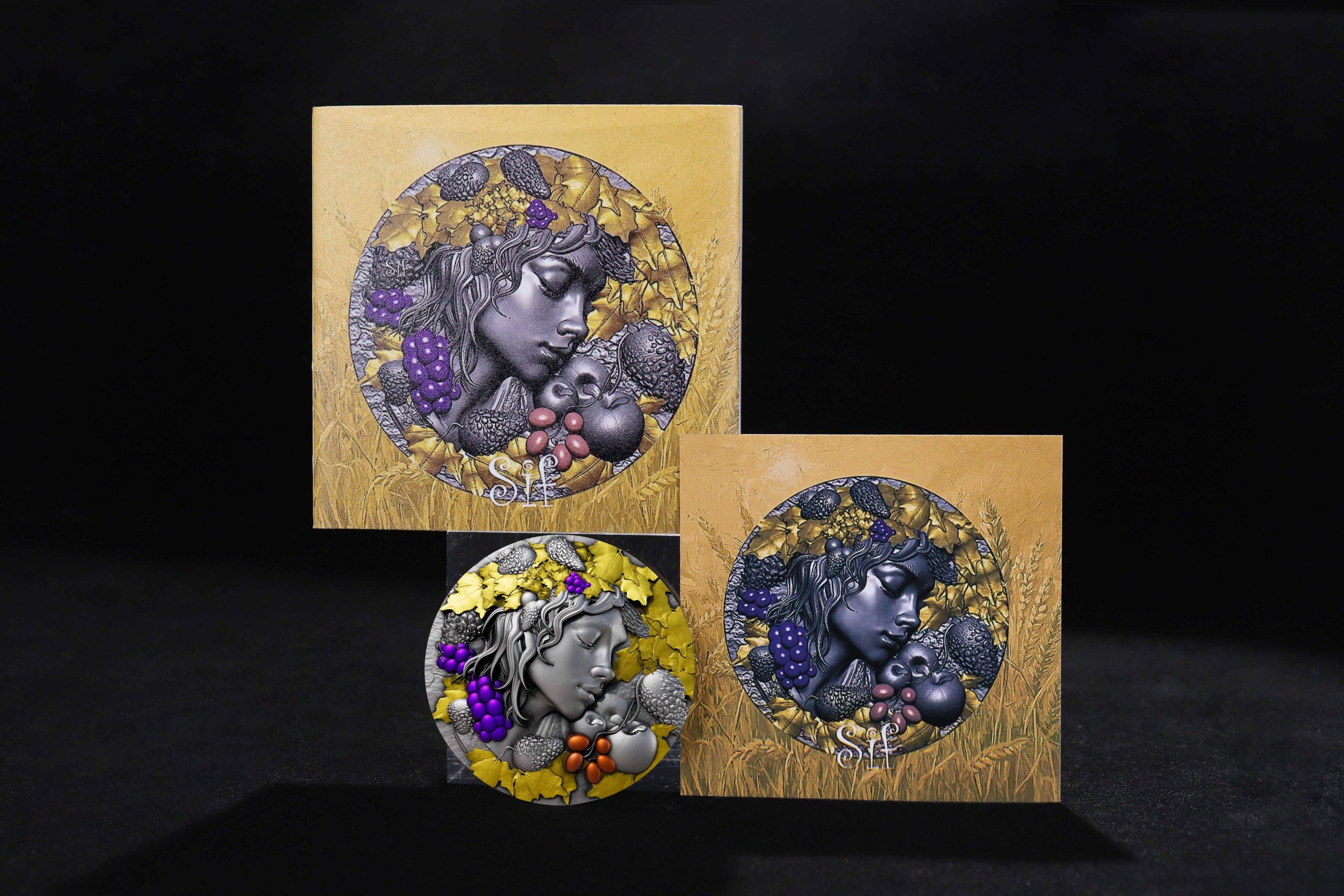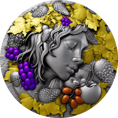 The Norse Blessing – Sif coin celebrates the bounty of nature and promises prosperity for 2025. Crafted from 2 oz of pure silver and limited to just 199 pieces, this 50 mm coin is a masterful tribute to Sif, the Norse goddess of the harvest, fertility, and growth. The obverse features a serene portrait of Sif, surrounded by intricately sculpted symbols of abundance—grapes, raspberries, acorns, and golden leaves—that evoke the rewards of a plentiful harvest and the cycles of life.