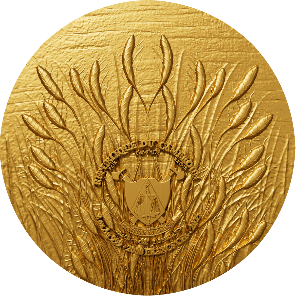 On the reverse, a radiant field of wheat rendered in stunning detail rises in gilded stalks, symbolizing renewal and the culmination of hard work. The emblem of the République du Cameroun grounds the design in authenticity and value. This coin is more than a collector’s item—it is a talisman of growth, gratitude, and harmony, inviting you to embrace Sif’s blessings and the promise of a bountiful new year.