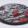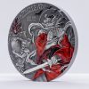 First coin in a new series: Asian Mythology. Smartminted(r) on a 50mm 3oz silver blank in high relief. Antique finished with partial color (red) and partial proof finish (the sword). Make sure to get the first coin in the series as just 333 pcs are released.