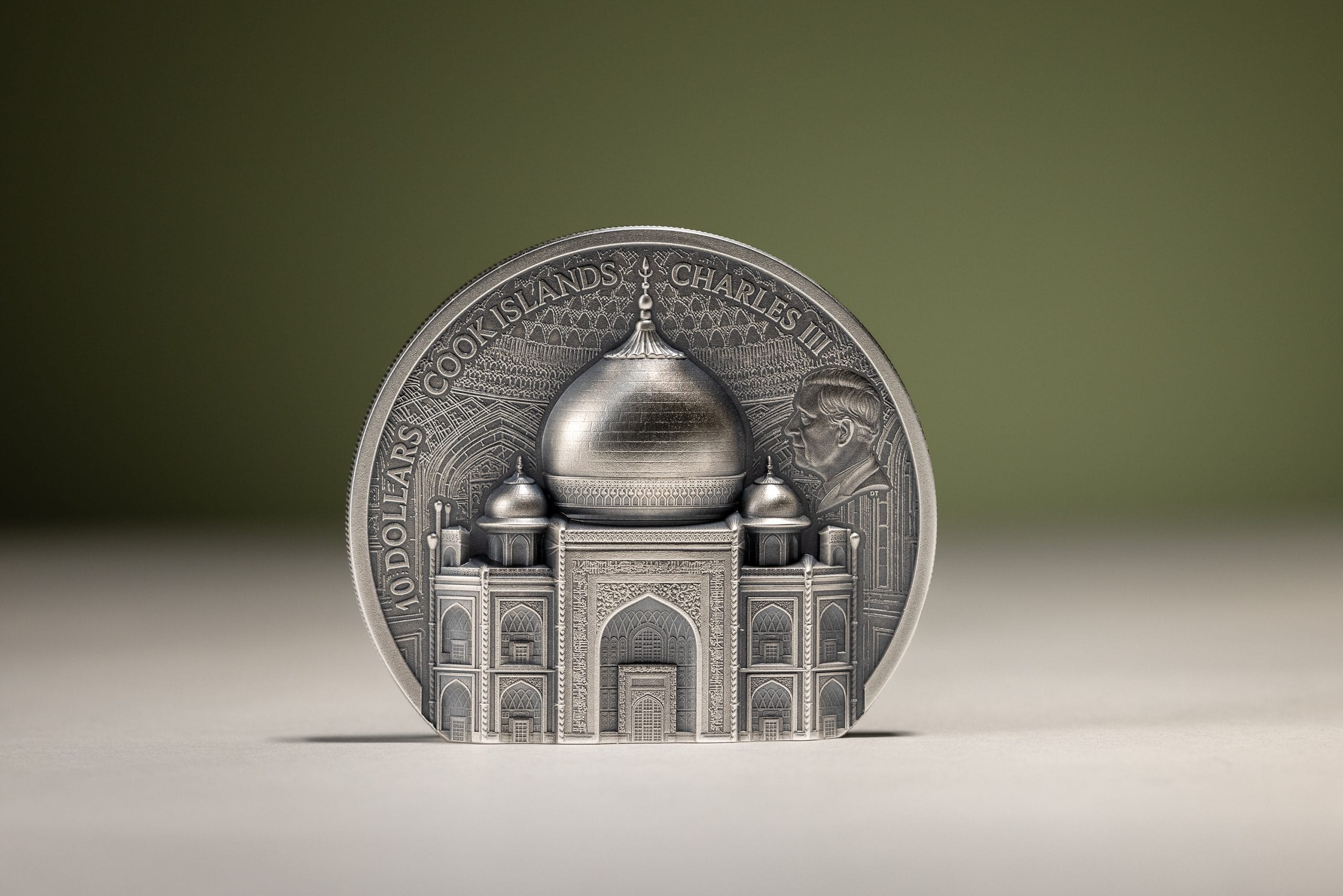 The freestanding coin with an antique finish is already the 4th issue in this successful series. The ultra-high relief on both sides impressively highlights the special architectural form of the building. The obverse shows details of the tomb, while the reverse depicts the interior view.