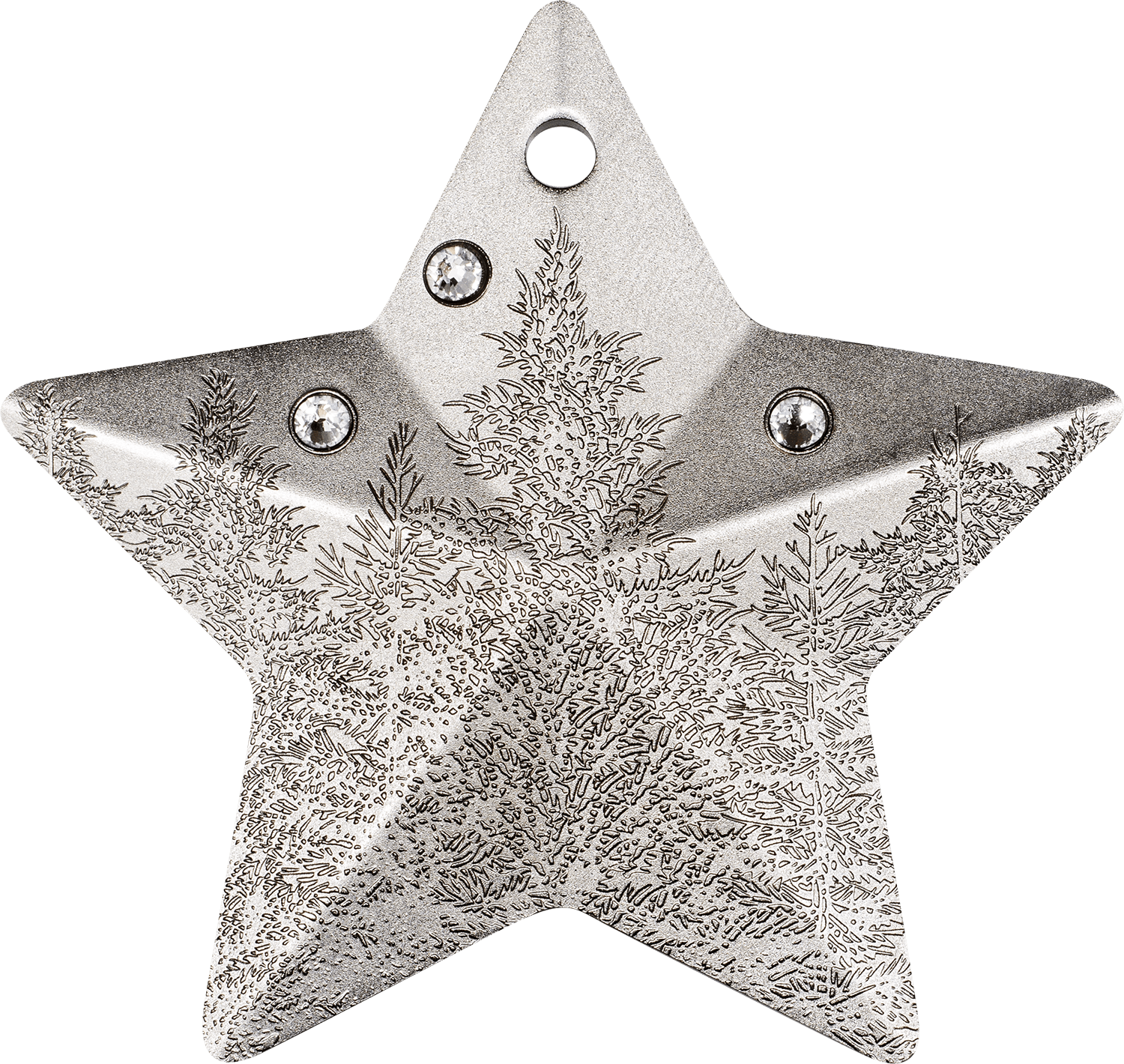 Created using state-of-the-art smartminting® technology, the ultra-high relief brings the intricate details of the fir tree to life, while the finishing enhances the elegant, frosty appearance. Three sparkling crystals are embedded in the design, giving it a festive glow. Whether fully rhodium-plated or fully gold-plated – this numismatic work of art enchants with a new pattern and special charm.