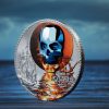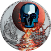The Crystal Skull is back in 2019 with the ominous Luna de Sangre issue. Centerpiece of the coin is a metallic blue, skull shaped SWAROVSKI® crystal superimposed on a blood moon. An abandoned pirate ship sails on a black proof background into a fiery sea.
