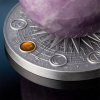 numismatic artwork is paired with a 35 mm Lepidolite sphere, whose