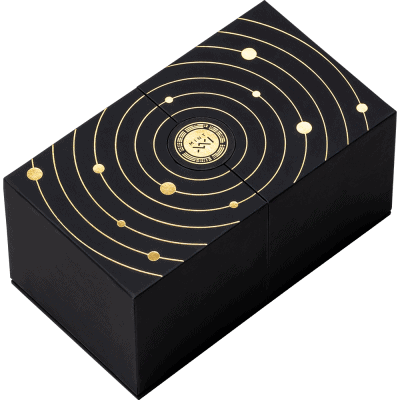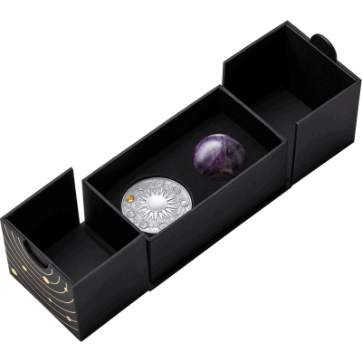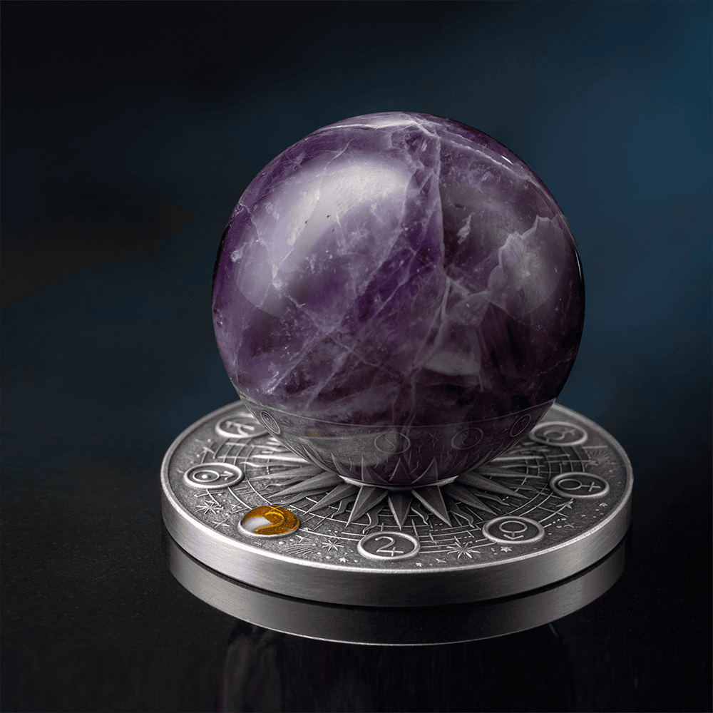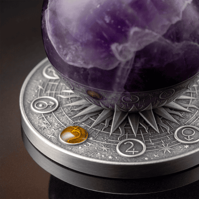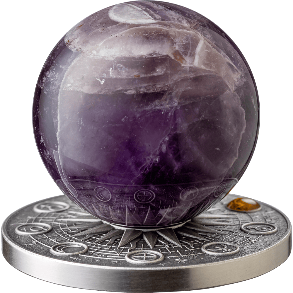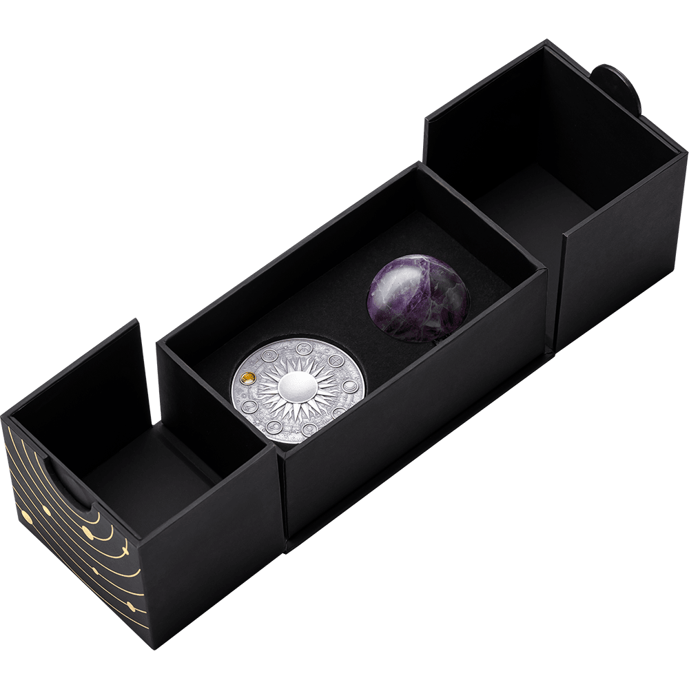 the Solar System is represented by a 35-mm amethyst sphere as its centerpiece, with unique