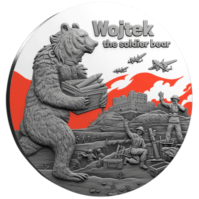 The Wojtek the Soldier Bear coin honors the remarkable true story of a Syrian brown bear who served alongside Polish soldiers during World War II. Adopted as a cub in Iran in 1942, Wojtek became an integral part of the Polish army, sharing daily life with the troops. He was officially enlisted and accompanied the soldiers to Italy, where he notably helped carry heavy ammunition during the fierce Battle of Monte Cassino. Wojtek’s presence uplifted morale and symbolized the deep bond between humans and animals during wartime. After the war, he lived at the Edinburgh Zoo in Scotland, continuing to inspire many. This touching story is beautifully captured on a 2-dollar, 1-ounce silver coin, which features detailed engravings of wartime scenes such as Monte Cassino ruins, bomber planes, and a mortar. Most notably, the obverse of the coin bears Wojtek’s actual paw print, making it a truly meaningful tribute.