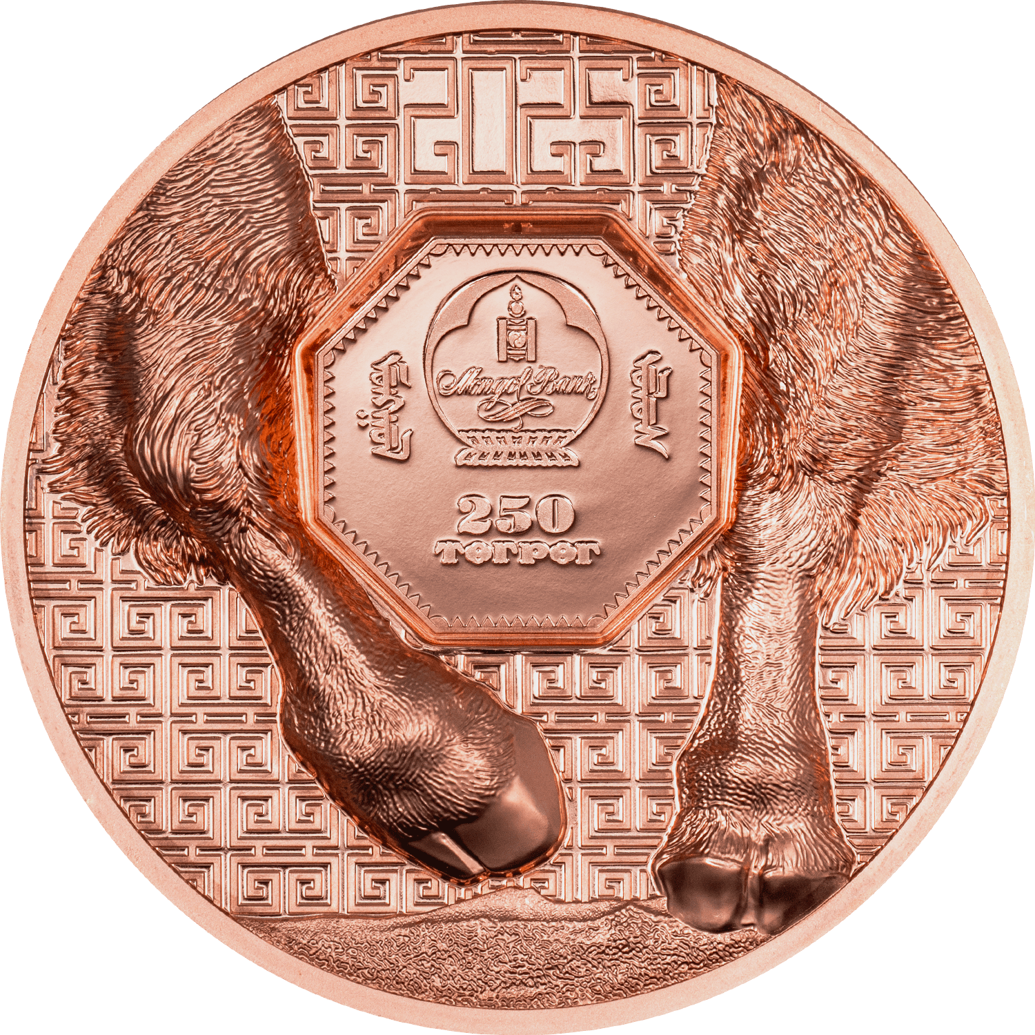 An impressive animal is brought to life by the combination of detailed design and a deliberate use of high relief and subtle coloring. Can you see the three other bison in the background? This issue marks the end of the highly successful «Wild Mongolia» series – a worthy finale.