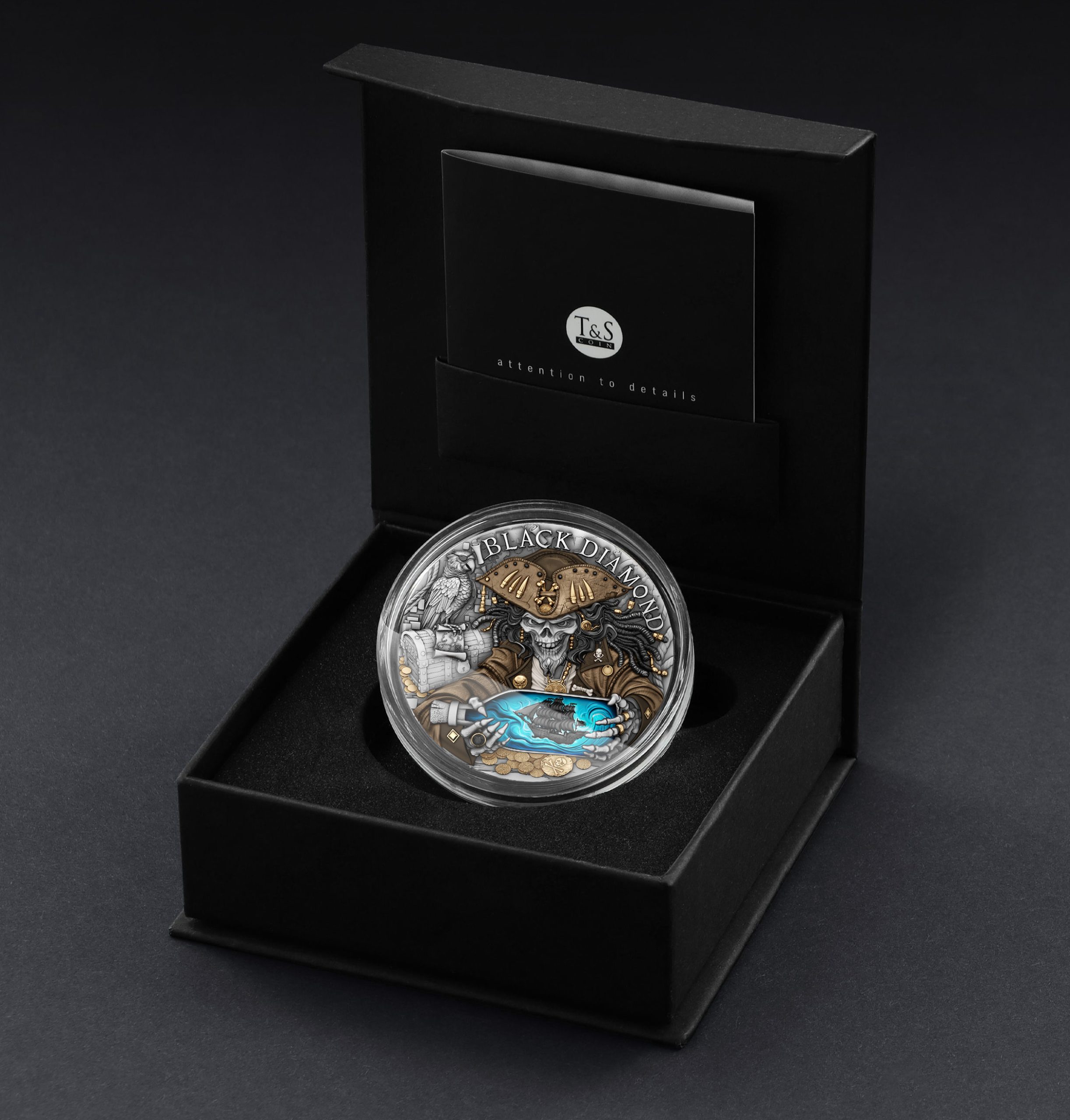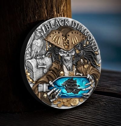 Step into a world of power, danger, and untold secrets with Black Diamond—our newest silver collectible coin in the highly regarded Pirates series. Inspired by the success of the 2024 Treasure Island release, the Black Diamond invites collectors on an unforgettable journey of hidden mysteries, courage, and discovery.