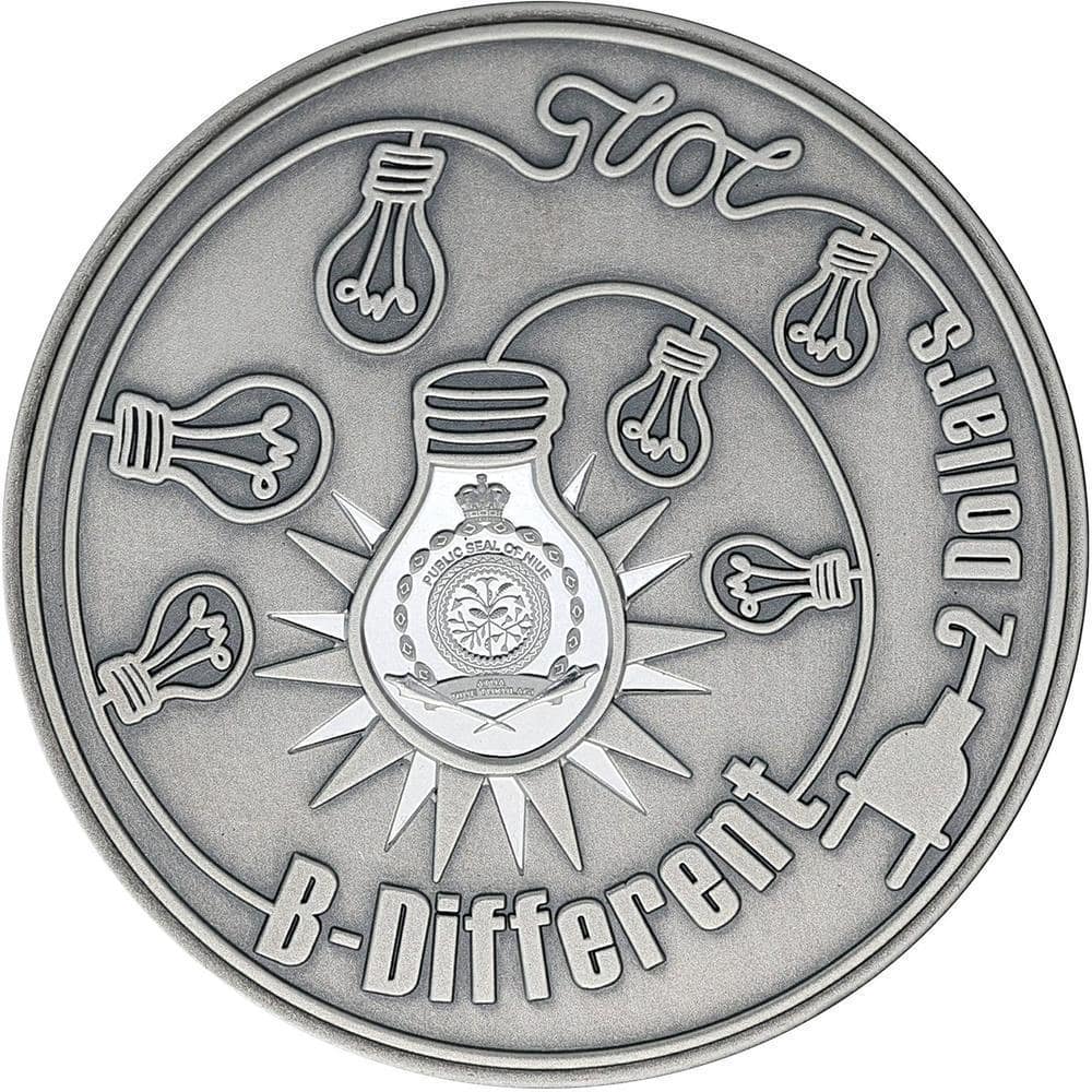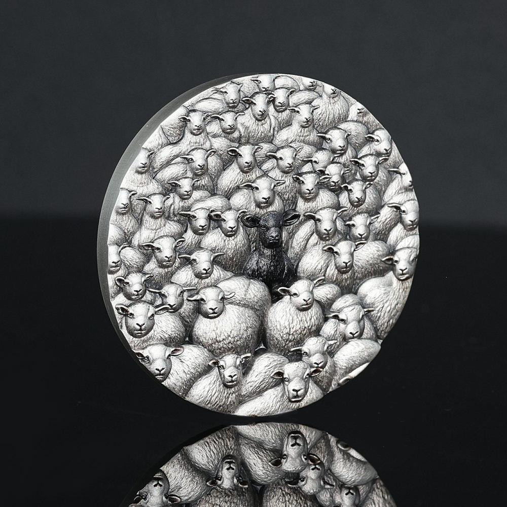 This striking 2 oz .999 fine silver coin from Niue (2025) marks the debut of the “B-DIFFERENT” series — a tribute to individuality and the courage to defy conformity. Finished in Antique with selective Proof, it embodies the spark of rebellion against the monotony of sameness. The reverse captures this spirit with a symbolic scene: a flock of identical white sheep, from which a single black sheep steps forward into the light, fearless and unapologetic. The obverse continues the theme with a string of unlit bulbs swallowed by darkness, except for one brilliant, glowing light at the center. This radiant bulb, rendered in Proof, encircles the Public Seal of Niue and illuminates the inscriptions “B-DIFFERENT,” the “2 DOLLARS” face value, and the year of issue integrated into the wire itself. Presented in a specially themed case with a Certificate of Authenticity and limited to just 499 pieces worldwide, it is a bold statement cast in precious metal.
