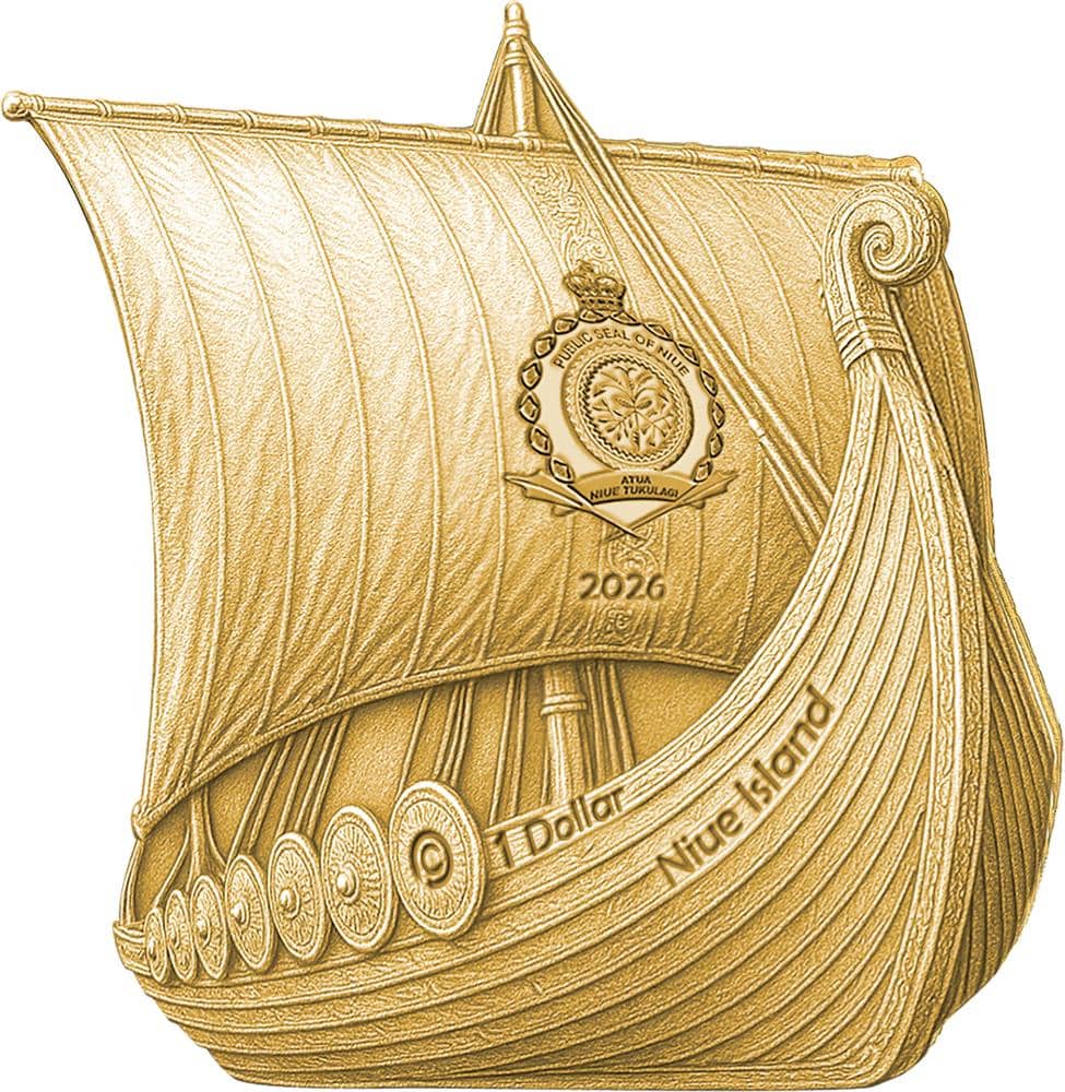 The composition presents a dramatic scene framed within the silhouette of a Viking ship, emphasizing motion, tension, and authority. Every detail reflects the raw energy of a seafaring culture driven by courage and conquest. More than a collectible, this coin stands as a tribute to legend, where history and myth merge into a timeless expression of power.