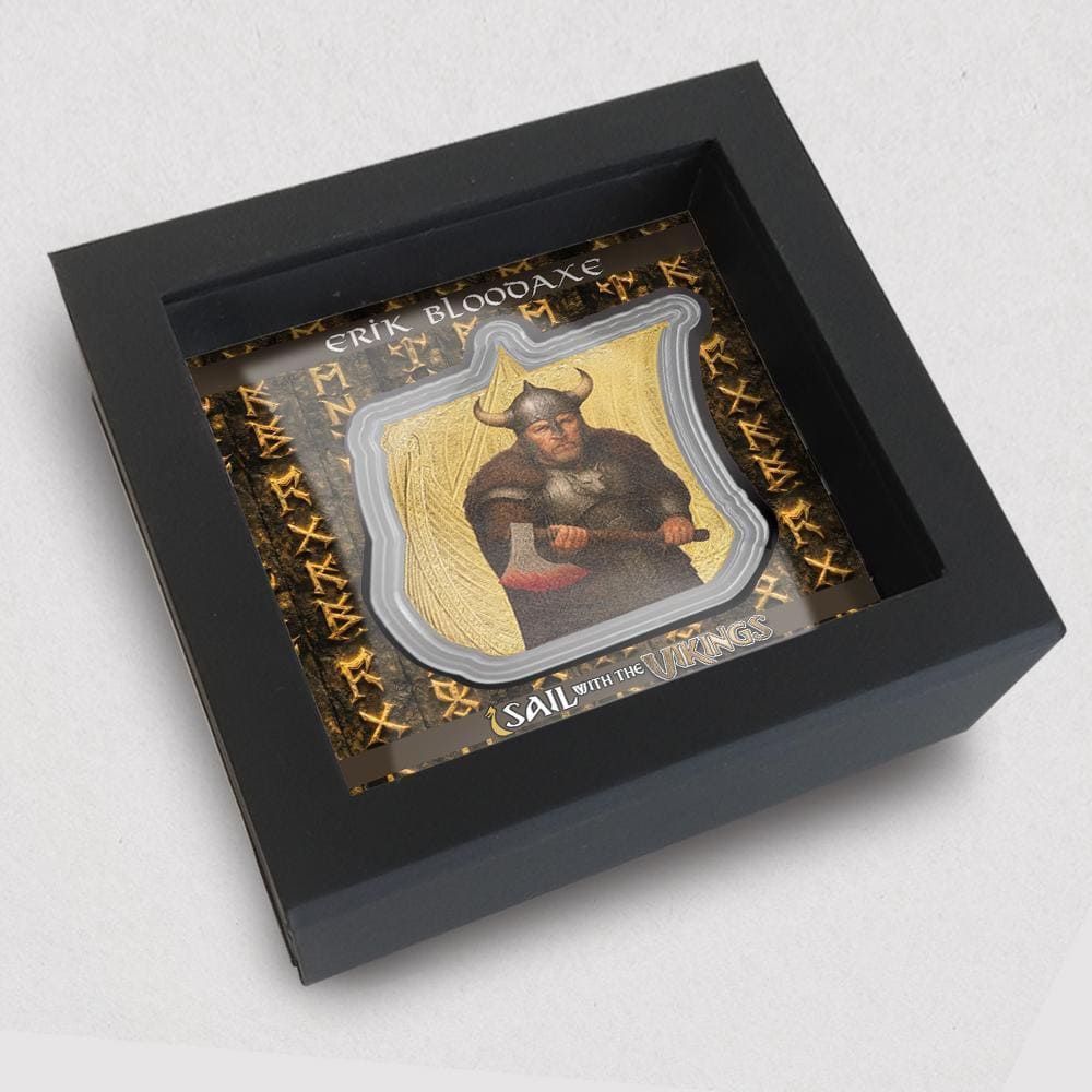This powerful silver coin continues a series inspired by the fearless spirit of Viking warriors, capturing a world defined by strength, conquest, and unyielding resolve. The design brings to life a legendary figure whose name echoes through history, embodying ambition, dominance, and the harsh realities of power.