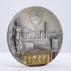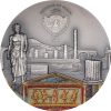 The obverse side of the coin depicts the current archeological site of Pompeii with in the background again the Vesuvius. On the left is a well-preserved Roman statue. At the bottom a colorful fresco from one of the Roman villas of Pompeii. The Coat of Arms of Palau is inserted on the top with the inscriptions: “REPUBLIC OF PALAU” (the issuing country) and “10 DOLLARS” (the face value) plus “2023” (the year of issue) at the bottom.
