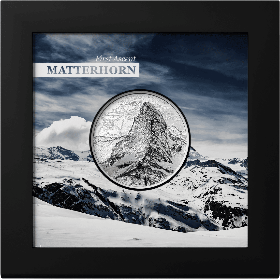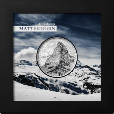 This special 1 oz silver coin honors that historic climb, with a mintage limited to 1865 pieces. Featuring Switzerland as the issuing country, it showcases ultra-high relief of up to 3.5 mm, capturing the Matterhorn in breathtaking detail. The detailed embossing brings the Matterhorn to life – you can almost hear the wind howling around its massive mountain structure.