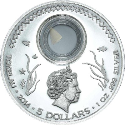 Tokelau – 2014 – 5 Dollars – Shark Tooth GREAT WHITE SHARK (PROOFLIKE)